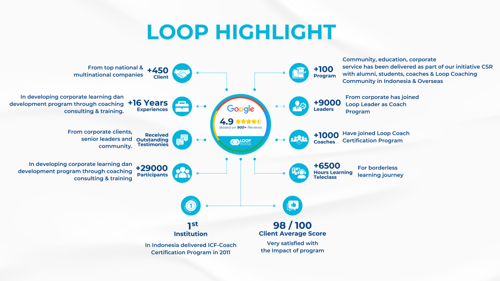 Loop Institute of Coaching telah berdiri selama 16 tahun dan telah mendapatkan berbagai penghargaan dan kepercayaan dari para klien kami